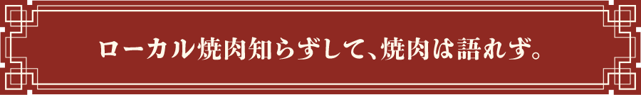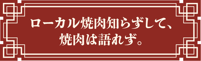 ローカル焼肉とは、地域独⾃の産業・歴史・⽂化により発展を遂げた地域特有の焼⾁です。決してひとくくりにはできない、 地域独自の焼肉を現地の作法で お楽しみください。
