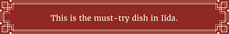 Located inland, Iida has long relied on animals for both agriculture and transport. At its core lies a culture of valuing every part of the animal—where all kinds of meat, including offal, are cherished and enjoyed with care.